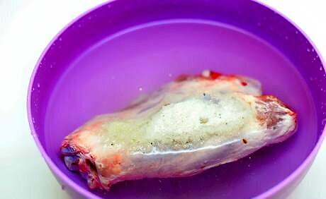 Soak the ham in cold water if it is uncooked. Get a large pot and place the ham inside it. Add enough cold water to completely submerge the ham. Change the water out every 6 to 8 hours as salt crystals cloud the water. Soaking removes some of the salt prevalent in country hams. You can safely soak the ham for up to 72 hours. Country hams are typically uncooked and will need to be in the oven longer than cooked hams.