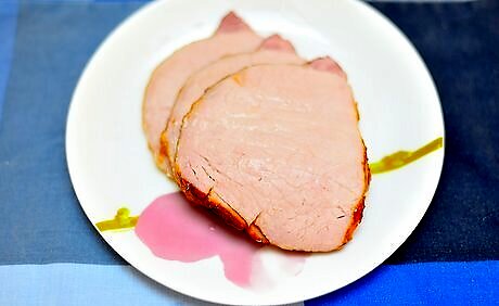 Let the ham rest for 15 minutes before cutting. During these 15 minutes, the inside of the ham continues to cook. It also causes the ham to hold onto juices, preventing it from drying out. After the 15 minutes are up, slice the ham and serve it.