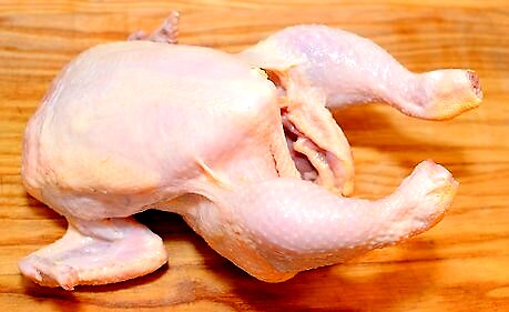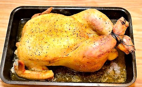 Roast poultry in a roasting pan. Like beef, poultry is usually best roasted in a pan on top of a bed of seasonal vegetables, like onions and carrots. Cut big chunks of whatever you want in the bottom of the pan, then lay the chicken on top of it. Avoid roasting bags. A common gimmick at supermarkets are plastic roasting bags, which supposedly speed up the cooking time by turning conventional ovens into microwave-like super-heaters. The chicken cooked in these bags is soggy, though, losing much of the benefit of roasting in the oven. Take the time to do it right.