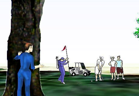 Start at the end of the course, at the 18th hole, so that you go against the flow of the golfers.