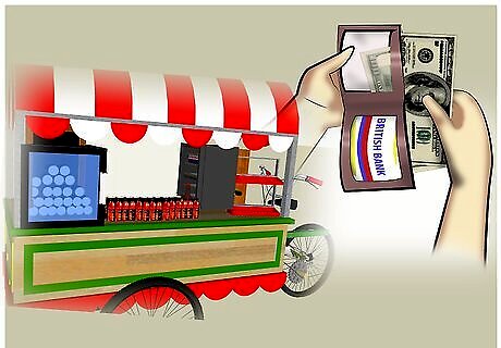 Count and record the amount of money in your bank, and take it with you on the cart.