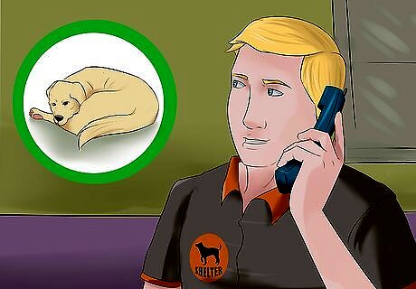 Contact a dog shelter or a rescue group. If you are not able to give the dog a home but you do not want the dog to end up homeless, you can contact your local dog shelter or rescue group. Call them directly and ask them if they would take in the dog and register the dog for adoption. You can find dog shelters and rescue groups in your area by searching online or by calling your local Humane Society. Look for dog shelters that have a no-kill policy, as this will ensure the shelter will not put the dog down if a home cannot be found within a certain time limit. Be aware that surrendering the dog to a pound means the dog’s chances of finding a new home are very limited. Most pounds are only legally required to hold a pet for 72 hours and then the pet may be put down.