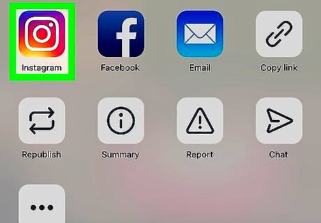 Tap Instagram. It's the purple, pink, and yellow camera icon. If it's your first time exporting an iFunny video to Instagram, you'll be prompted to grant permissions to access your photos. Grant any permissions requested to ensure you can save the video.