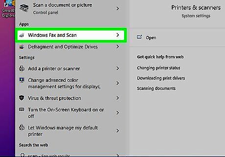 Click Windows Fax and Scan. It should be near the top of the search results.