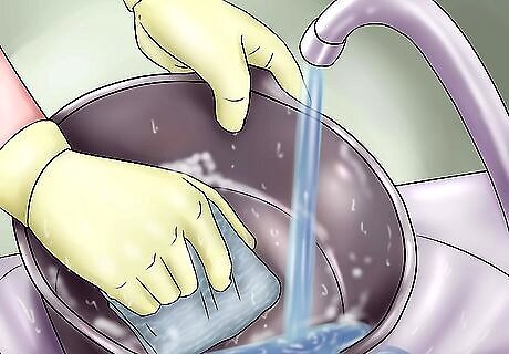 Wash your Dutch oven, if necessary. You need to get the Dutch oven to a point that it has no baked-on food particles, and the surface is free of encrustations. A Dutch oven used on a fire may have a lot of soot, so take care with your hands, surfaces, and clothing. If you need to use soap, use just a little, mild dish soap, and rinse well. (If you do not, the taste of soap may stay in the cast iron seasoning and take a long time to get out...yuck!) Steel wool will work well, but may cause some areas to discolor. Only use power-abrasives such as polishing power tools for Dutch ovens in extremely bad shape.