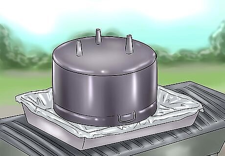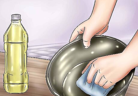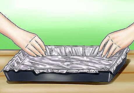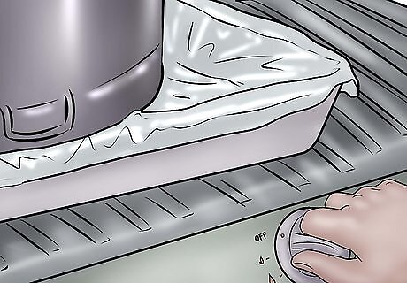 Wrap a cookie sheet with aluminum foil. Seasoning a Dutch oven will likely cause oil to drip, and this will protect your oven. Be sure the sheet is larger than the base of your Dutch Oven. Place the cookie sheet on the lowest shelf in the oven.