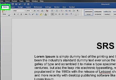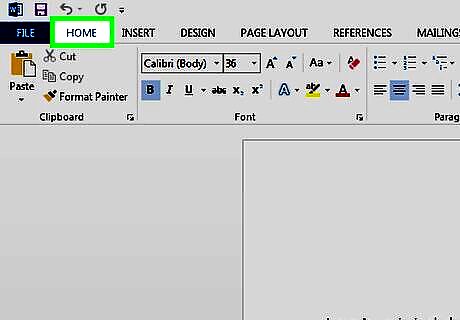 Click the Home tab. This is the first tab in the toolbar at the top of the screen.