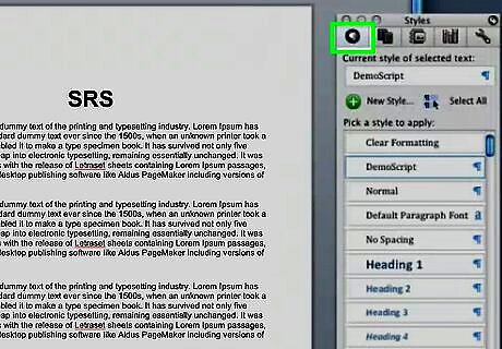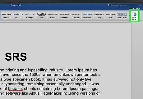 Click the Styles Pane icon on the right side of the toolbar. The Styles pane will appear on the ride side of the screen, displaying a list of every style in Word.