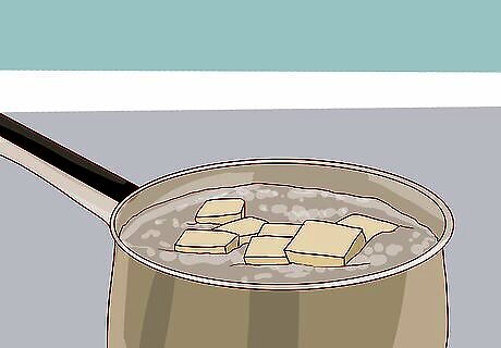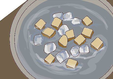 Plunge the bulb into boiling water. By doing this, you stop the growth of enzymes in the kohlrabi bulb which would cause the bulb to lose color, flavor and nutrients. For whole kohlrabi bulbs, leave in the boiling water for 3 ½ minutes. For ½” cubes, leave in the boiling water for 1 ½ minutes.
