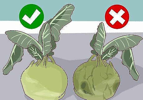 Choose smooth skin. Look for a kohlrabi bulb that has even skin without cracks or bruises.
