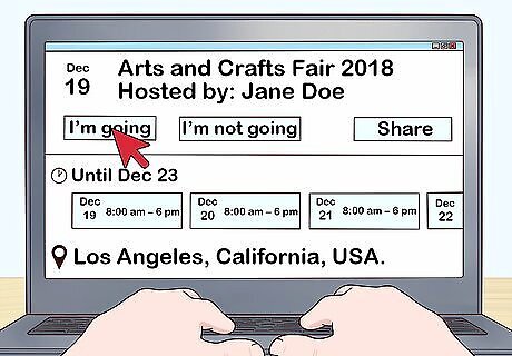 Participate in arts and crafts fairs. Search online to find upcoming fairs in your area. Check booth rental costs; you may find free opportunities, but high traffic fairs can cost hundreds of dollars. Calculate how much you’d need to sell to balance the cost of renting a booth, and make sure that figure is feasible. Search social media for local crafters pages and network with other local artisans. See if anyone has posted or has information about whether a particular fair was worth the booth rental fee. Create business cards and other promotional materials and hand them out to your customers at craft fairs.