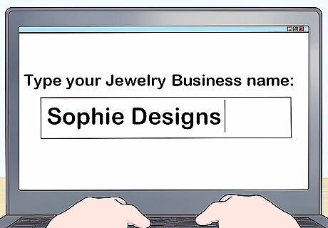 Come up with a creative name that isn’t already trademarked. You could simply use your first or last name, like “Sophie Designs” or “Jacque’s Gems.” Alternatively, come up with something clever or abstract, like “Wicker and Gold” or “Social Bling.” When you think of a name, search for it online to see if it’s already taken by another business or e-commerce shop. In the U.S., search for your name on your state’s Secretary of State website to see if it’s trademarked by a registered business. Additionally, see if the domain name is available. If it is, purchase it so you can set up a website in the future.