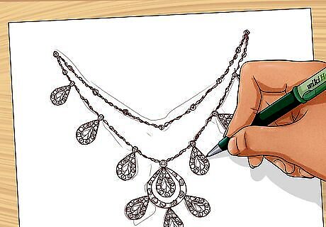 Sketch ideas, browse online, and visit craft stores to get inspired. Check out jewelry online and at stores, and note designs you admire. Head to local craft stores, and look for materials that inspire you. Even if you're already skilled at designing jewelry, consider taking a class in stone setting, mold making, or another aspect of fabrication. A class in business or personal finance could also come in handy. Look online for relevant classes at a local community college, art school, or technical college.