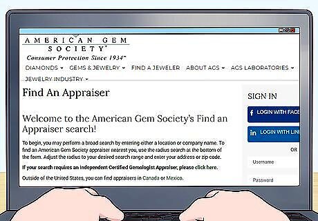 Research your jewelry’s value. Have the items you’re selling appraised so you have a clear idea of their value. Additionally, search online for recent sales of similar items, as the appraised value doesn’t necessarily reflect the actual current market value for your jewelry. Search online for a certified appraiser or check the American Gem Society’s directory at https://www.americangemsociety.org/search/custom.asp?id=4711. In many cases, you can have a jeweler give you a rough verbal appraisal for free. If the piece is complex or has valuable gemstones, you might need to pay an appraiser to grade the stones or research the item to determine its value. Depending on the piece's complexity, that could cost anywhere from $50 to $200. If you're planning on selling your jewelry online, get a written appraisal for each piece from a reputable jeweler.