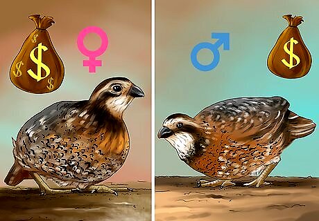 Set a price for your quail. Unlike most birds quail are very cheap and the price differs on the breed, colour, age, sex and quality of the quail. Do some researching online to find out how much quail sell for in your area. Male quail should be set at a lower price than female quail since males are hard to house together, crow more than females and don't lay eggs. The most common reason for someone purchasing a male is for breeding and fertilizing the eggs. The price of your quail can be set higher if there aren't many quail selling in your area. Some people can be desperate to find quail in their area just because their quail needs a mate, they want a supply of quail eggs or they want to breed their quail. It's a supply and demand situation. Different breeds of quail can be set at different costs. E.g. Coturnix quail can be sold for more money because they lay bigger eggs and have more meat on them whilst button quail have little meat on them and their eggs are too small to be eaten.