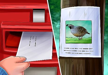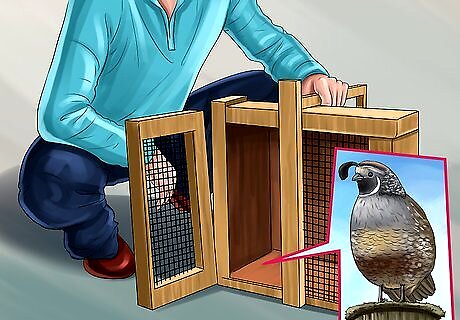 Care for your quail properly. The last thing you want to do is sell poor, weak or scruffy quail otherwise they won't sell. Keep your quail on a well-balanced diet. Quail should be fed a feed with about 22% protein, a game bird feed is the best to go for and can be found in local pet shops and feed stores. You should also supplement your quails diet with calcium for strong eggs and grit to grind down food and always provide fresh, clean water. House your quail in a suitable way. Your quail should have 1 square foot of floor space each and males shouldn't be housed together. It's also important not to house too much quail together and never isolate a quail as they are social birds. Keep your quail healthy. Check the quail daily for parasites, wounds, diseases, etc. You should also keep them stress-free by keeping predators away and getting rid of disturbances. Clean the cage daily. A clean cage can prevent parasites and diseases in quail, it can also keep the quail tidy. Clean the cage at least once a week to keep the quail happy and healthy.