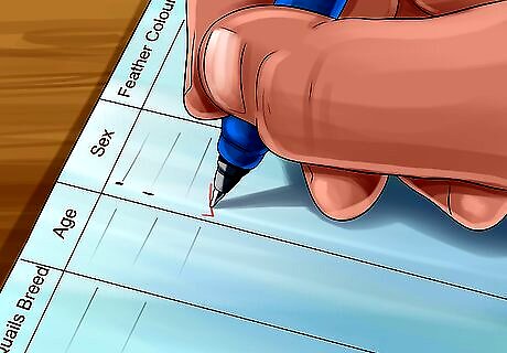 Tell them how to look after quail. If someone’s going to buy your quail, they’ll want to know how to take care of them. Tell them what they eat, their type of housing, when they need to be cleaned up, how many space they need, and also tell them any extra information such as their behaviours or how many eggs they lay. Along with this, also warn them about anything dangerous to quail such as predators, disease, fighting, temperatures, etc.