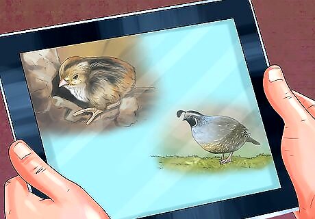 Find a local pet shop. You can locate a local pet shop on a map, through the yellow pages or just by asking someone. Check the pet shop out to see if they care for their animals properly and to see if they even sell quail in their shop. The animals in the pet shop should be active, clean, clear eyed, eating and drinking, and they shouldn't be huddled up.