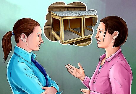 Put your quail in a clean box. Before you take your quail to the pet shop, make sure they’re in a safe and secure container such as a cardboard box. Place fresh bedding in the box and poke some breathing holes in it. Be sure the quail aren't cramped up in their box so that they stay happy on the trip.