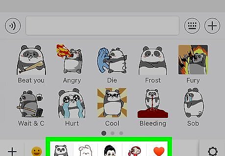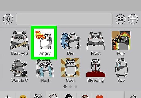 Tap a GIF sticker collection. This opens a list of every sticker in the pack. Swipe left across the sticker pack area to view more options. If you don’t have any sticker packs, tap + at the bottom-left corner of the screen, select a sticker pack, then tap GET.
