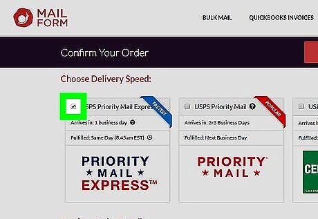 Select a delivery speed. At the top of the page, check the box next to one of the following options depending on your needs: USPS Priority Mail Express - Costs $39.99 and arrives in 1 business day. Allows tracking. This option allows for same-day delivery if processed by 8:45 AM EST. USPS Priority Mail - Costs $17.99 and arrives in 2 to 3 business days. Allows tracking. USPS Certified Mail - Costs $8.99 and arrives in 4 to 8 business days. Allows tracking. USPS First Class - Free and arrives in 4 to 8 business days. Does not support tracking.