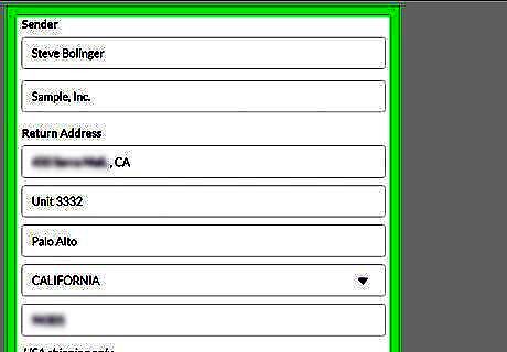 Enter your return address. Just like the recipient's address, you'll need to enter your own return address including your name, street address, city, state, and ZIP code.