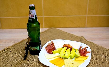Match your cheese with the right beer. The rules for pairing cheeses and beers are very similar to those that dictate wine. Lighter cheeses go well with lighter beers and stronger cheeses pair well with darker, heavier beers. You should also look with an eye for geography and try to create pairings from the same region. Consider having a variety of beers available for your guests that pair well with the cheeses available.