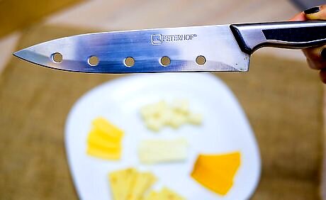 Use a different knife for each cheese. For your softer cheeses, make sure to give each cheese its own knife. This will prevent a cross-contamination of flavors. The same is true for your harder cheeses if you decide not to precut them. A butter knife will work well for softer cheeses. You may need a paring knife for harder cheeses.