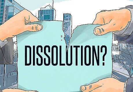 Provide instructions for dissolution. You must define under what situations the partnership can be dissolved. Generally, partnerships dissolve automatically on the death of one of the partners, but you can provide for the continued life of the partnership. Explain what triggers dissolution and what steps the partners need to take to keep the partnership going. For example, many partnerships dissolve when a partner withdraws, retires, or is expelled; a partner dies or enters bankruptcy; a partner becomes incapacitated; or all partners unanimously agree to dissolve. Explain what then happens when dissolution is triggered: “On dissolution, the remaining partners shall have the right to elect to continue business under the partnership name, by themselves, or with any new persons that they choose.” By including this language, you give yourself the option of continuing with the partnership as is. Be sure to state whether the vote must be unanimous, by majority, or by some other percentage.