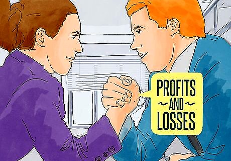 Decide how to divide profits and losses. You can divide profit and losses however you want. For example, you might divide them equally. Or you could divide them in proportion to each partner’s capital contribution. Because this is a key element of the partnership, you should come to an agreement with the other partners before drafting this section of the partnership agreement. You should list the partners along with their ownership percentage. Then you can explain that profits will be distributed based on this percentage: “Generally, gross cash distribution will be made in proportion to Partners’ percentages of partnership interest. Operating expenses will also be shared generally at the time those expenses are realized in proportion to Partners’ percentages of partnership interest.” Also be sure to explain how profits will be distributed. You might distribute only once a year or you could allow partners to make periodic withdrawals. If you allow periodic draws, then be sure to specify how much each partner may withdraw at one time. For example: “Unless and until modified by the unanimous written consent of the partners, [list partners who can withdraw] will be entitled to a monthly draw of $_____.”