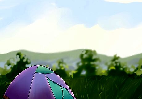 Stake the tent to the ground. There should be little vinyl hoops or eyelets at each corner and in the center of each side of the tent, which you should use to stake the tent to the ground. Push the stake through and into the ground to secure the tent. If you're going to be sleeping in the tent immediately, you may choose to not stake it, especially if you're in an area with lots of coverage and low wind. If you're going hiking though, or the wind is up, it's usually important to stake the tent to the ground so it doesn't blow away.