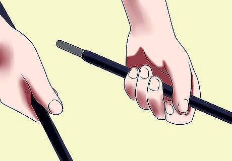 Connect the tent poles. Put together, the tent poles should be six or ten feet long, snapped, fixed, or screwed together. All tent poles will be put together slightly differently, but most modern tent poles are connected with bungee ties that allow you to just snap them together without much effort. Fix them, so they're all put together, and then lay them on the ground flat.