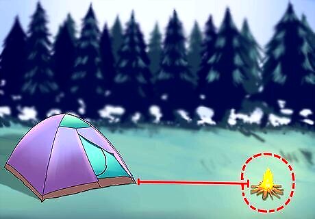 Situate your tent away from the fire. Ideally, you’ll want to place your tent upwind from designated fire areas or pits at the campsite. Make sure that any embers or sparks will be clear of your tent to avoid dangerous fire hazards. It’s also smart to place your tent upwind from your toilet area, if you’re going to be camping long term.