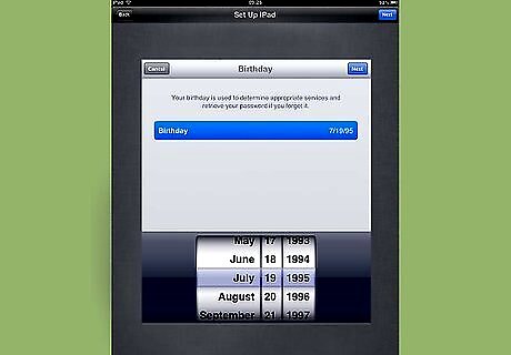 Enter your birthdate into the fields provided on-screen. Your birth date will be used for security purposes in the event you forget your Apple ID password.
