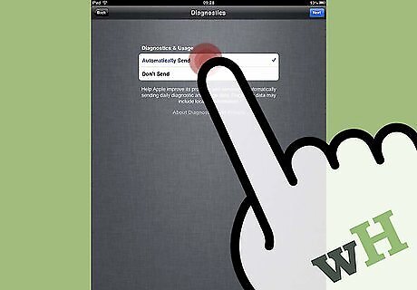 Verify whether you want Apple to anonymously collect usage data from your new iPad. Apple will use this information to develop new products and software based on your activity.