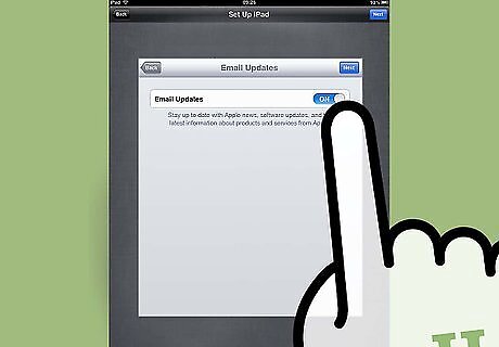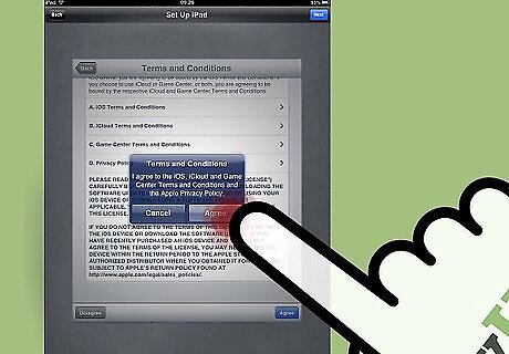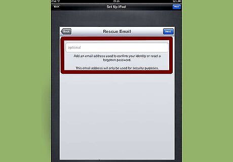 Verify whether you want to use Apple’s iCloud service. iCloud is a storage service that automatically saves all documents, media, and other personal information to Apple’s servers, which can be helpful in the event your iPad stops working or becomes lost.