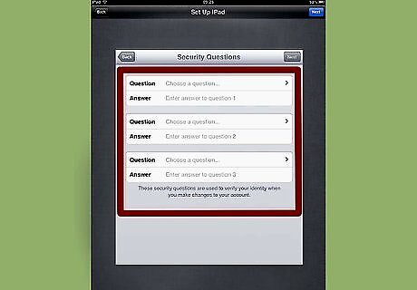 Choose three security questions and answer each question correctly. Security questions may be used by Apple at a later date to verify your identity and help you retrieve forgotten account information.