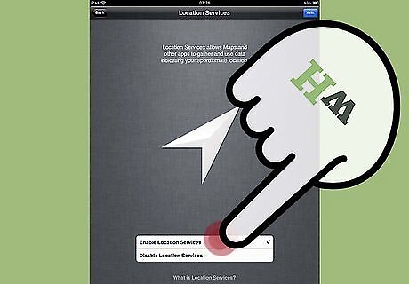 Select whether you want Location Services enabled or disabled. Enabling the Location Services feature will allow the apps on your iPad to access your GPS and customize your experience based on your geographical location.