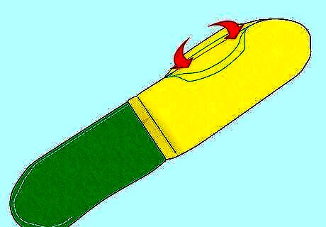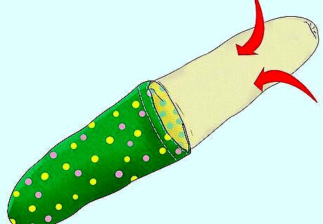 Tuck the inner fabric into the outer fabric. To finish the project, all you need to do is tuck the inner fabric into the outer fabric side. Use your fingers to tuck this material in. You can also use a pencil (eraser end) to help you push it in, or simply slide the skillet cover onto your skillet handle. After the inner fabric is hidden, your project is complete!