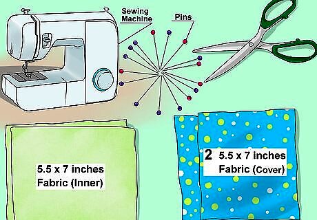 Gather your materials. Making a skillet cover from scrap fabric is a simple project, but it requires some special materials and a bit of basic sewing knowledge. To make a skillet handle cover, you will need: Two 5.5 by 7 inch pieces of fabric for the inner and outer parts of the handle cover. You can use any cotton or linen fabric you have around. 5.5 by 7 inches of insulating fabric, such as wool, fusible fleece, or even an old towel. Sewing machine Pins Scissors