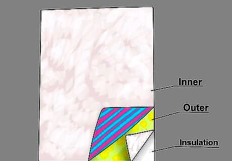 Layer the fabrics. Place the insulting fabric down first, then place the piece of fabric that you want to use as your outer fabric face up over the insulating fabric. Then, place your piece that will be on the inside of the handle on top of the stack facing down.