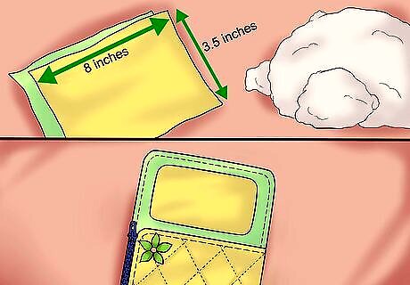 Make a matching pillow. You can make a pillow to go with your doll’s sleeping bag by using two pieces of fabric. You can use the same kind you used for the sleeping bag or just something that matches. Cut out the pieces so that they are 3.5 by 8 inches each. You may want to measure the doll's head first to ensure that the pillow will be big enough. Then, line up the pieces with the right sides (print sides) facing each other. Leave a small gap in one side so you can turn the pieces inside out to reveal the print sides. Then, fill the pillowcase with stuffing and hand sew the open edge with the raw edges folded in.