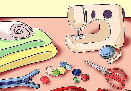 Gather your materials. Making a doll sleeping bag is a quick project for even a novice sewer. However, you will need to have some special materials to complete this project. You will need: Two kinds of fabric. You will need fabric for the outside and inside of your sleeping bag. Use two different ones for the inside and outside of the sleeping bag. Cotton fabric is easy to work with, or you can try something like fleece or flannel for a softer, cozier sleeping bag. Batting. This will go in between your two fabrics to provide insulation and fluff. Sewing machine Scissors Measuring tape 48 inch separating zipper Embellishments, such as ribbon, buttons, pompoms and silk flowers