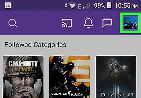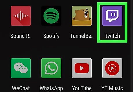 Open Twitch. This app icon looks like a white chat bubble on a purple background. You can find this on either your home screen, in the apps drawer, or by searching. Log in if prompted.
