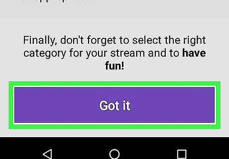 Open Twitch. This app icon looks like a white chat bubble on a purple background. You can find this on either your home screen, in the apps drawer, or by searching. Log in if prompted. A list of categories will load. If not, you can search for a video by tapping on the search icon Android 7 Search at the top left of your screen.
