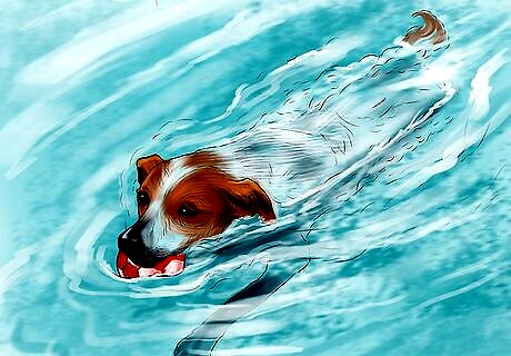 Schedule daily exercise. Exercise is an important part of any dog’s health. This is especially true for older dogs that need to maintain muscle mass. But your once vivacious dog may need less or different exercise as it ages. Tailor your dog’s daily exercise to what it can do. This might be a one hour walk or walking from your house to the neighbor’s. Celebrate whatever your dog is able to do with praise and affection. For example, say, “Way to go, Axel! You made it!” while giving your dog a pet on the ears. Consider alternative types of exercise for your dog. Activities such as swimming can offer an older dog exercise without harming their joints.