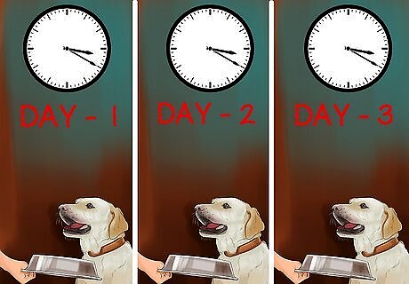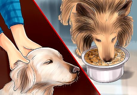 Feed your dog at the same time daily. Just like people, dogs that get older have a hard time handling change. It’s important to your older dog’s health to get enough to eat, even when it may be difficult. Feeding your dog at the same time each day can provide it comfort and show your affection. Talk to your vet about giving your dog optimum amounts of protein to maintain muscle mass without adding fat to its diet. Recognize that dental problems may make it difficult for an older dog to chew. Switching to smaller sized food or canned food may be beneficial. An excellent way to show a little extra affection at mealtime is to hand feed your older dog.