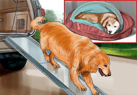 Ensure your older dog’s comfort. As dogs get older, they become especially sensitive to their surroundings. Environmental factors such as extreme temperatures or basic tasks such as having to climb stairs can stress your dog or may even be too difficult. Taking some time to adjust your dog’s environment for its age can ensure that it is comfortable. It also is a way to show your older dog affection. Consider placing stair steps or ramps in areas your dog likes to go. This can keep your dog from jumping, which helps keep joints healthy. Make your dog a cozy bed that also keeps it warm. You can purchase a plush dog bed or even an orthopedic bed to make sleeping stress-free and comfortable. Avoid extreme temperatures by keeping your older dog indoors when necessary. This can prevent stress and promote health and wellbeing. Consider keeping your dog’s fur longer to aid warmth. If this isn’t possible, sweaters and blankets can help keep your dog warm in colder temperatures.