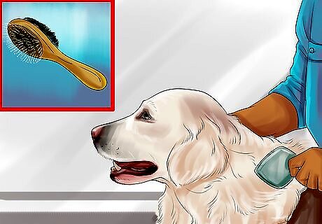 Help your dog with grooming. Older dogs' behavior can change as they age. You may notice that your older dog grooms itself less often. Helping your dog maintain its hygiene can boost health and wellbeing. Groom your dog yourself if you feel comfortable. Keep the session to 10 minutes and make sure your dog is lying or standing on a soft and non-skid surface. Use softer brushes or combs. Consider a professional groomer who works with older dogs. A trip to a groomer may cause an older dog stress, so finding someone who will groom your dog at your home may ease your pet. Let your groomer know about any special needs your dog has.