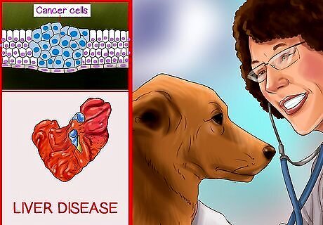 Visit the vet regularly. Dogs are now living longer than ever with improved veterinary care and dietary habits. But as dogs get older, they have a different set of age-related conditions. These can include cancer, liver disease, senility, and weakness. Scheduling regular vet visits for your older dog can prevent or catch potential health problems early. Schedule vet visits at least twice a year and more often if necessary. Let your vet know if you notice any new symptoms in your dog such as lack of mobility or weight gain.